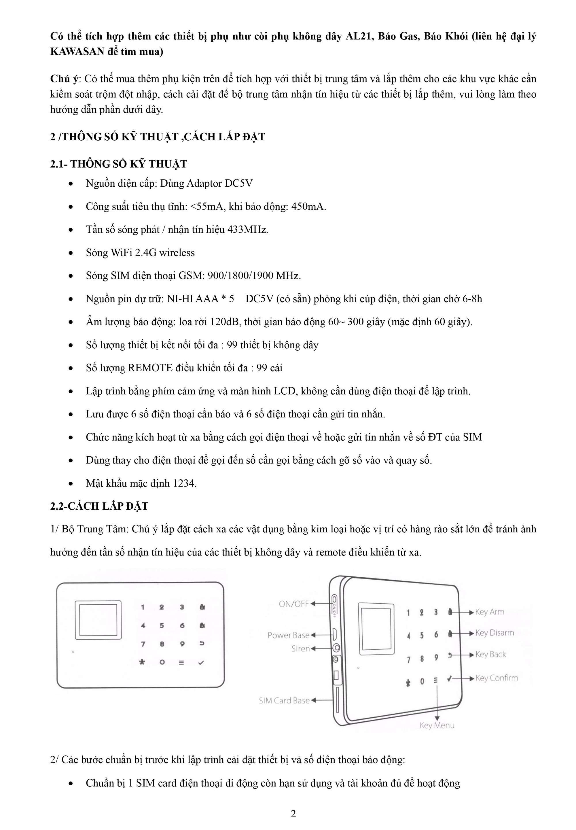 - Có thể tích hợp thêm các thiết bị phụ như còi phụ không dây AL21, Báo Gas, Báo Khói (liên hệ đại lý KAWASAN để tìm mua)