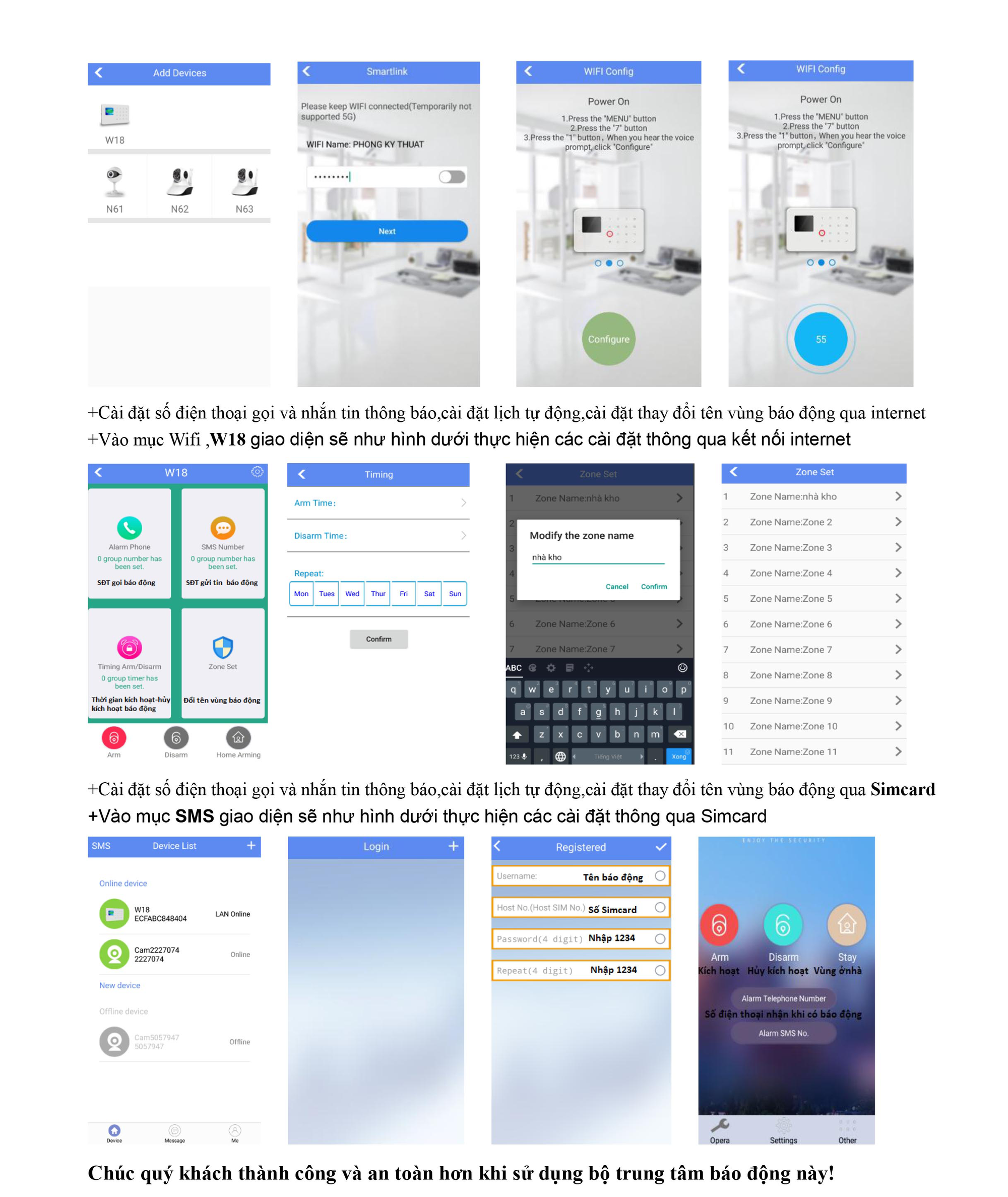 - Lưu được 6 số điện thoại cần báo và 6 số điện thoại cần gửi tin nhắn.