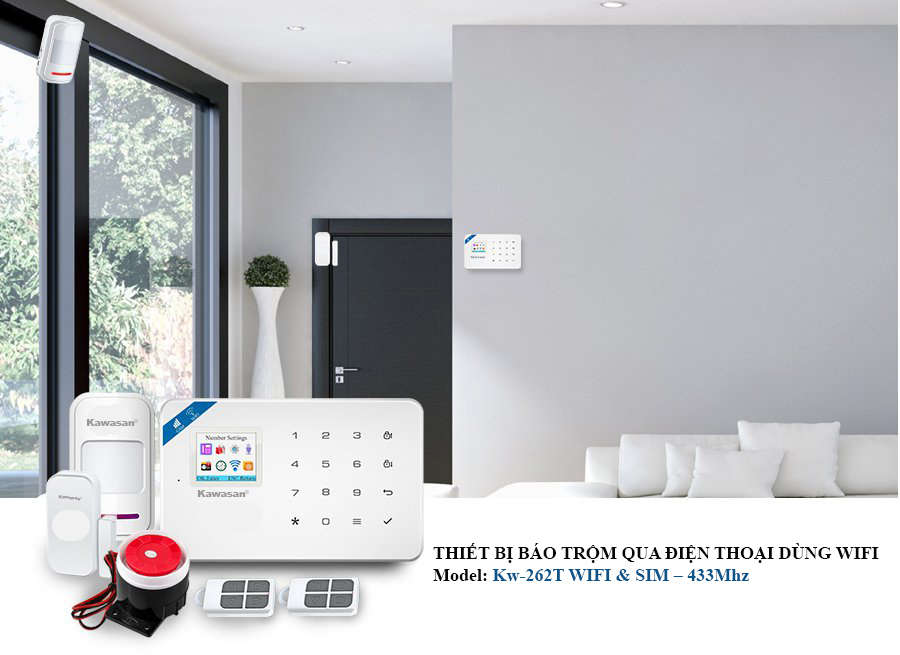 - Bộ báo trộm qua điện thoại dùng Sim GSM và Wifi .Tích hợp tính năng hiển thị trạng thái điều khiển .Đây được xem là giải pháp an ninh ,an toàn giúp người dùng nhận biết hệ thống an ninh luôn sẵn sàng hoạt động tốt . Hệ thống quay số tự động ,nhắn tin đến 6 số điện thoại cho chủ nhân khi có kẻ gian đột nhập , màn hình hiển thị LCD kỹ thuật số kết hợp với phím nhấn cảm ứng rất sang trọng.Kết nối không dây được tối đa 99 thiết bị không dây .Hệ thống báo động thích hợp cho gia đình, văn phòng, tiệm vàng…