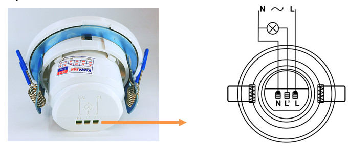 Ø Kết nối dây nguồn và tải cho cảm ứng như sơ đồ trên (Terminal N và L đấu vào nguồn điện 220v, N và L’ ra đèn)