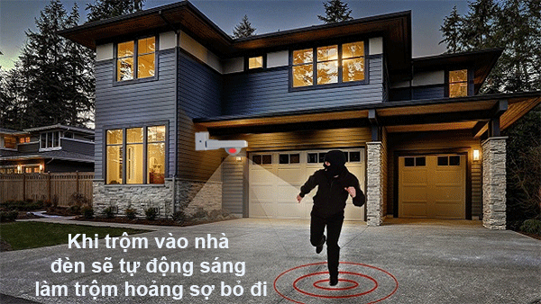 - Chống trộm khi lắp ở các vị trí cổng, ban công…vì khi đột nhập đèn sẽ bật sáng và kẻ trộm sẽ không dám vào nữa.