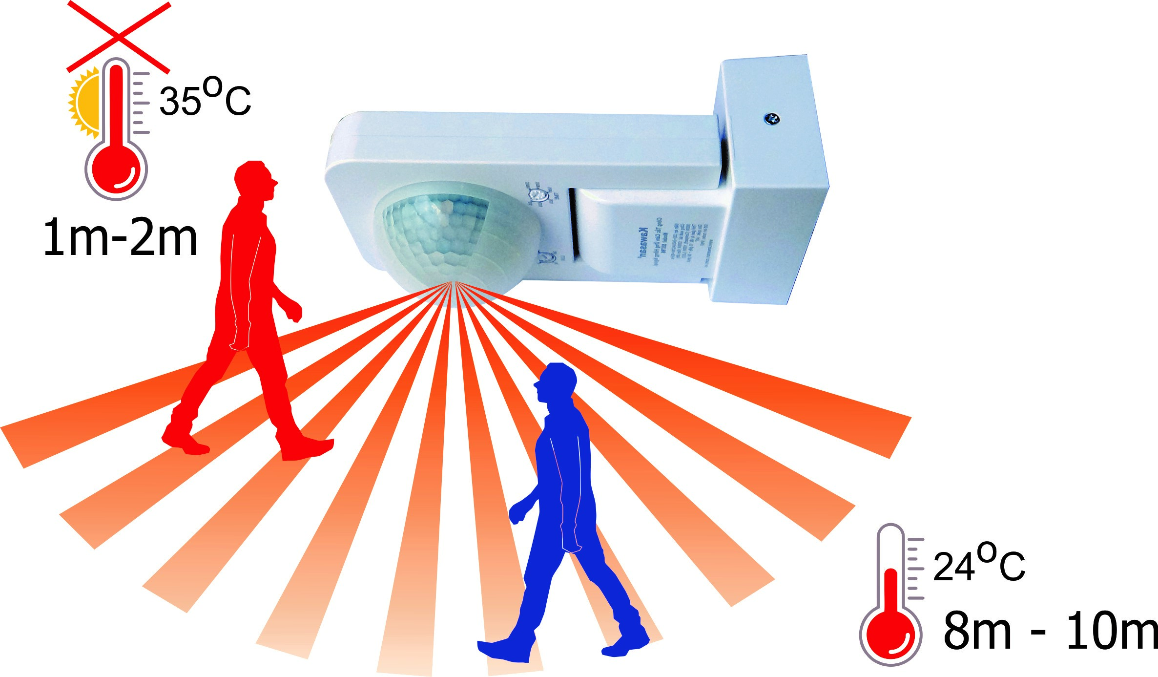 - Do hướng di chuyển của thân nhiệt: hướng di chuyển của thân nhiệt không vuông góc vị trí lắp cảm ứng, đối với cảm ứng hồng ngoại thì hướng di chuyển cần phải có góc từ 200 – 900 thì mới phát huy được độ nhạy và xa. Nếu di chuyển vì nếu di chuyển trực diện, hướng song song với cảm ứng thì sẽ bị hạn chế độ nhạy.