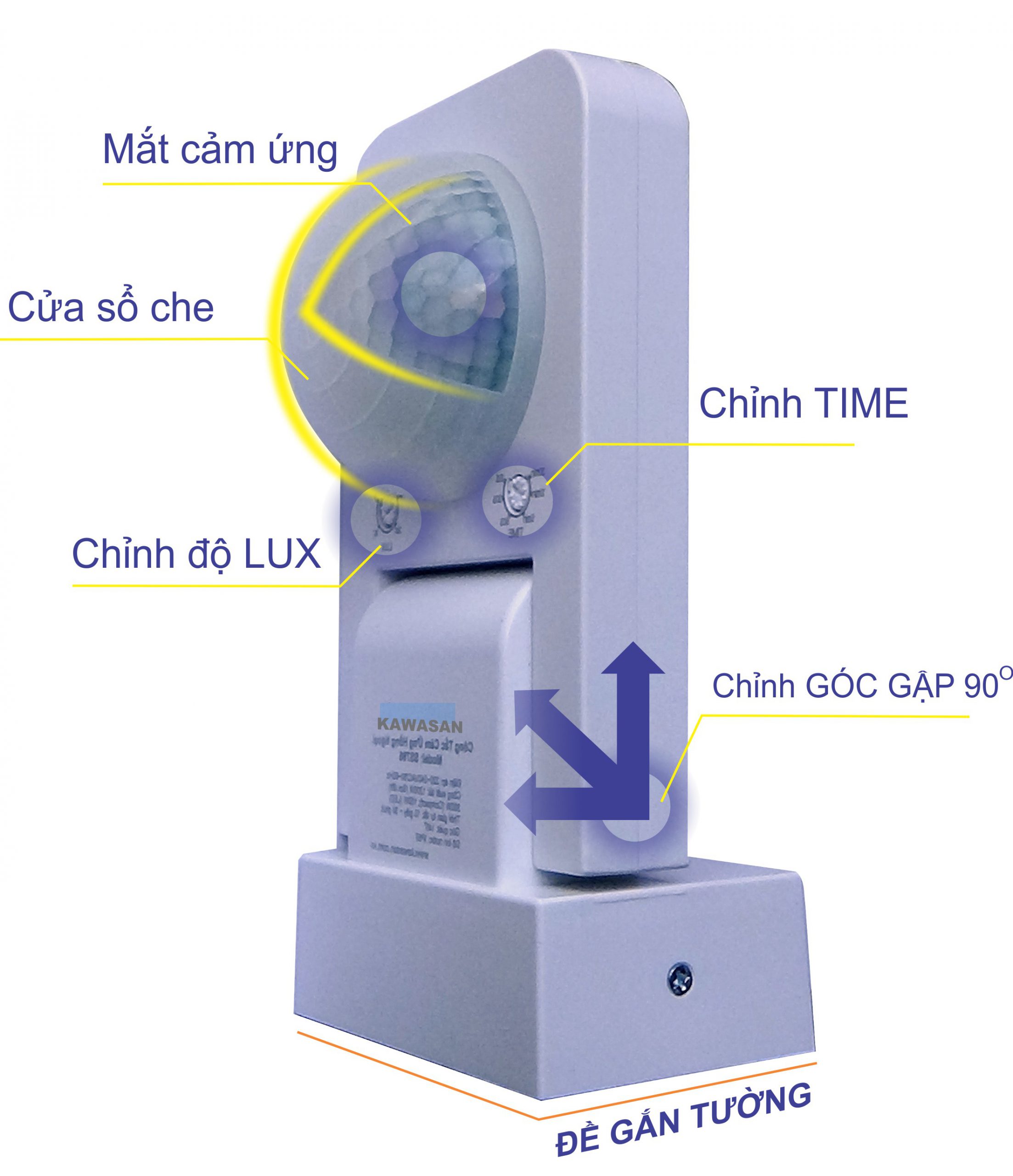 - Độ sáng điều chỉnh cảm biến hoạt động: từ 3 LUX(tối) đến 2000 LUX(sáng)