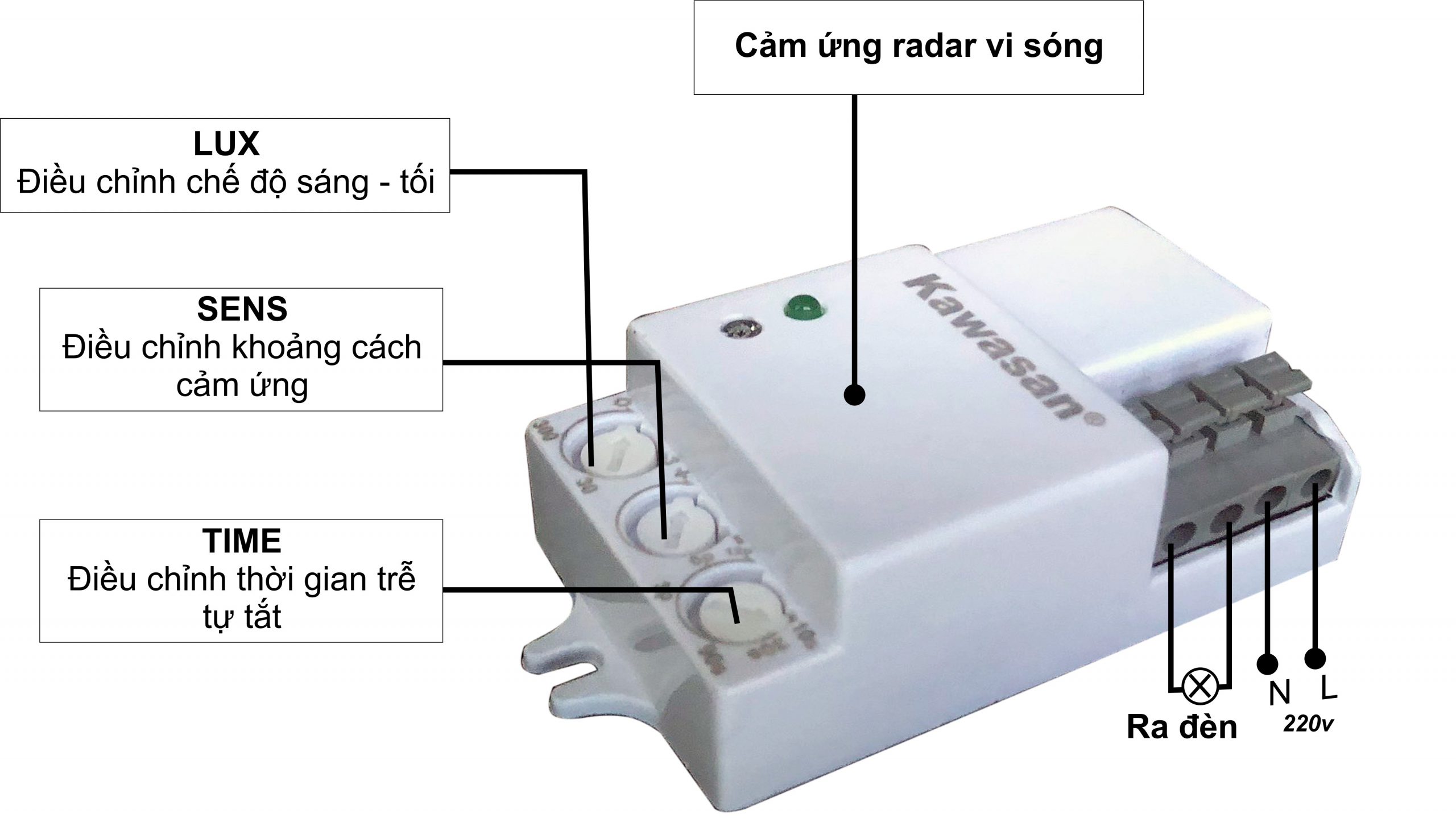 - Thiết bị cảm ứng vi sóng RS02D1 của KAWASAN được nghiên cứu cải tiến và sản xuất tại Việt Nam. Chứng nhận xuất xứ rõ ràng, đáp ứng nhu cầu thiết bị cảm biến vi sóng tại thị trường Việt Nam: độ nhạy cao, chính xác, không chập chờn và ít bị ảnh hưởng bởi các tác nhân khác ảnh hưởng trong quá trình sử dụng. Đặc biệt khi thời tiết nóng >320C thì cảm biến hoạt động rất kém như các loại cảm biến khác đang có trên thị trường.