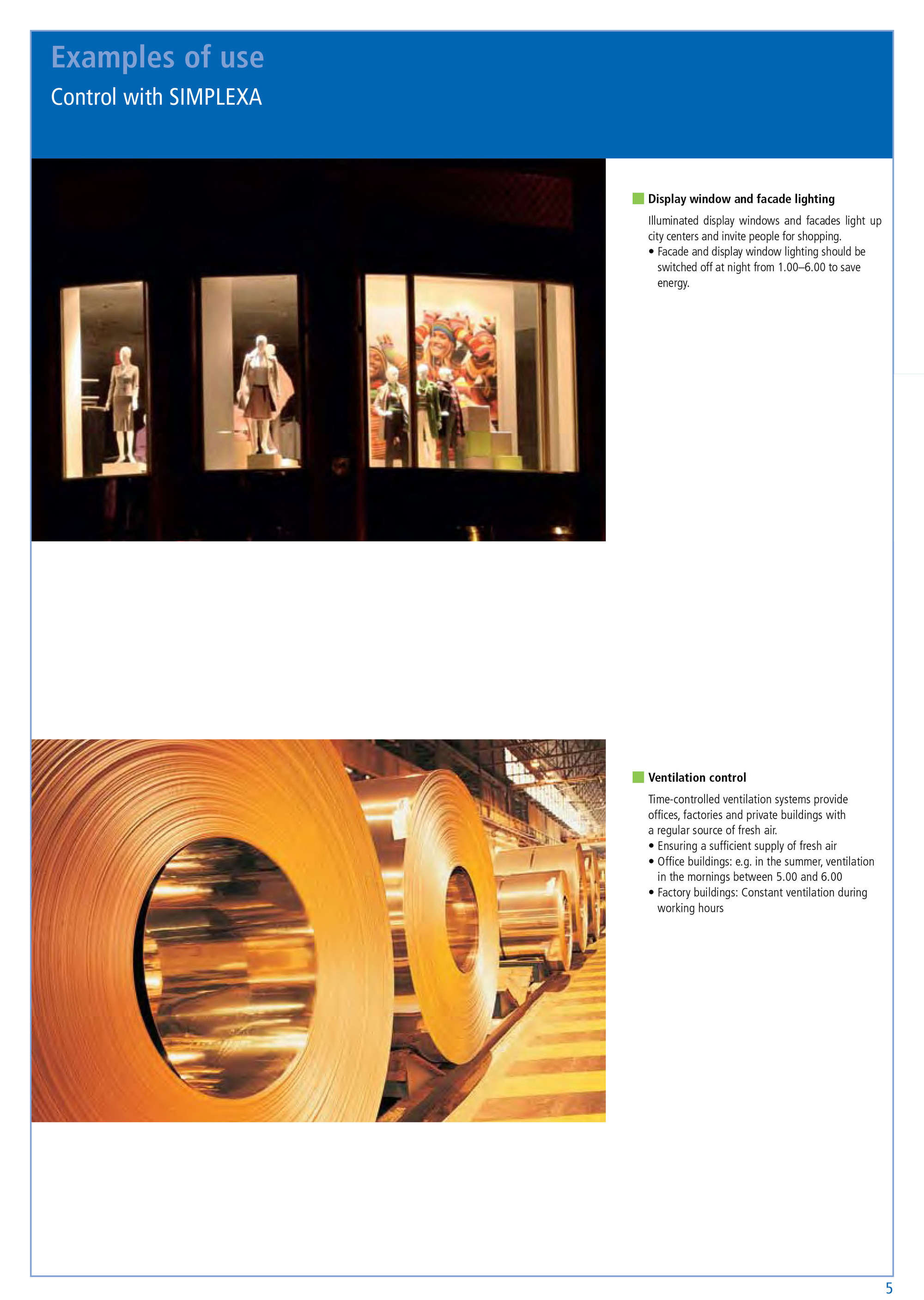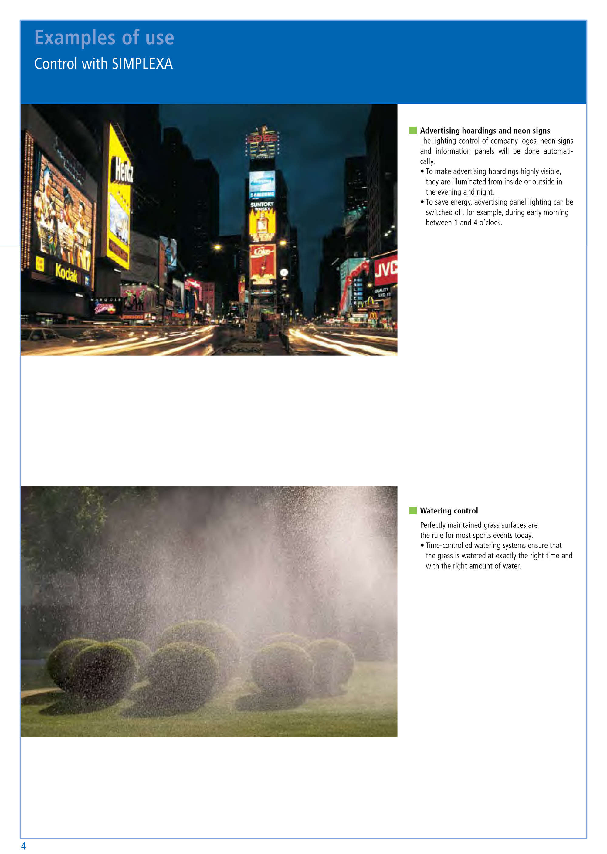 Điều khiển tắt mở chuông báo giờ, máy lạnh theo lịch hẹn giờ tắt mở trong tuần…, đèn sân vườn, đèn đường, bơm nước tưới cây, bơm khí hồ cá, tắt mở đèn bảng hiệu tự động…